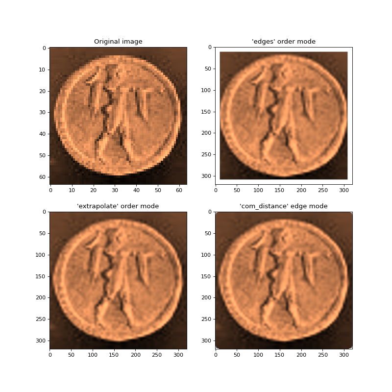 The bottom-left image uses order_algorithm='extrapolate' to permit resampling