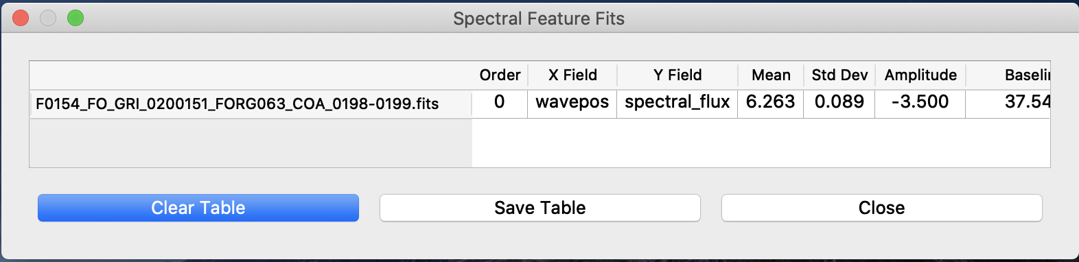 example, fitting a Gaussian to a spectrum feature would result in fitting a